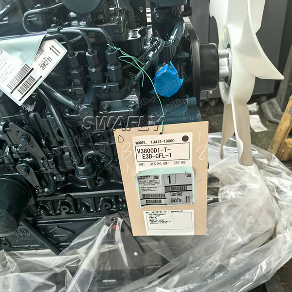 Ο κινητήρας Kubota V3800DI-T-E3B-CFL-1 ASSY 1J412-19000 περιλαμβάνει μπλοκ, εκκεντροφόρο άξονα, πιστόλια και δακτυλίους, turbo, εκκινητή, εναλλάκτη, κυλινδροκεφαλές, γραμμές καυσίμου και φούρνο.