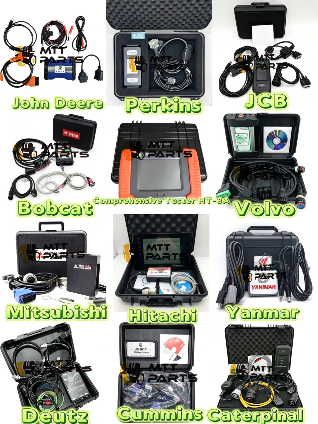 Αυτό που ξεχωρίζει είναι το πόσο πρακτικά φαίνονται. Δεν υπάρχουν γενικά εργαλεία που μπορεί να μισολειτουργήσουν. Αυτές είναι ρυθμίσεις για συγκεκριμένες επωνυμίες που συνδέονται σωστά και σας δίνουν τα δεδομένα που πραγματικά χρειάζεστε. Υπάρχει ακόμη και ένας ολοκληρωμένος ελεγκτής all-in-one (το HT-8A) που εμφανίζεται στη μέση, καθώς και επιλογές για επωνυμίες για τις οποίες είναι λίγο πιο δύσκολο να βρείτε καλά διαγνωστικά, όπως η Yanmar ή η Bobcat.